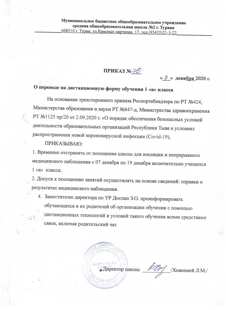 Новость Приказ №76 «О переводе на дистанционную форму обучения 1 «А» класс» от 07.12.2020 07.12.2020 / Нет комментариев