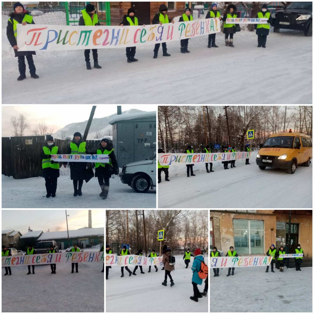 02 февраля 2021 года учащиеся и родители МБОУ СОШ 2 г.Турана подключились к республиканской профилактической акции «Пристегни себя и ребенка!» . Патрулировали на пешеходном переходе около школы, прошлись по улицам, города с лозунгом , с также патрулировали возле детского сада # 1, напомнили водителям о необходимости пристегнуть ребёнка и самого себя. Обстановка была спокойная.
