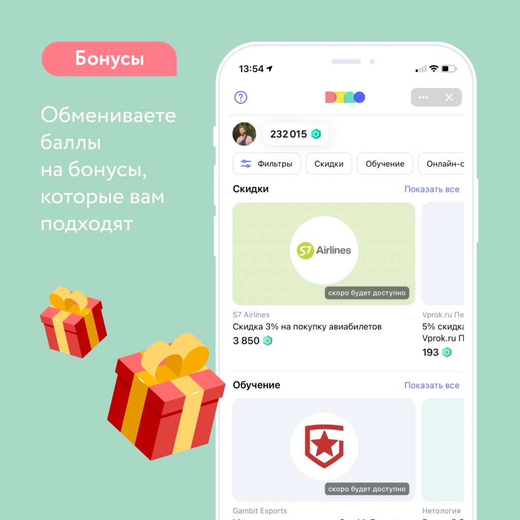 Мы договорились с партнерами и сделали бонусы очень разнообразными: это незаменимые компьютерные товары от Kingston, скидки на авиабилеты от S7, подписки на онлайн-сервисы Wink, Premier или More.tv, и даже экскурсия на космодром «Восточный». Также есть возможность получить образовательные программы от SkillBox и Uchi.ru.