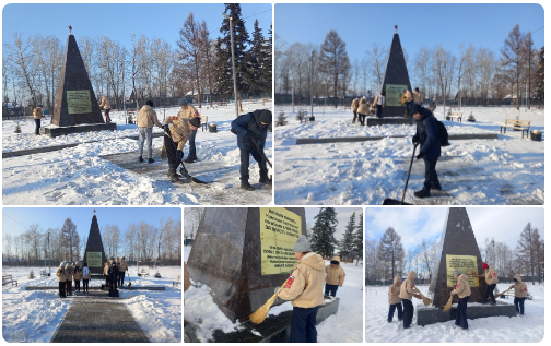 Юнармейцы МБОУ СОШ2 г.Турана, очистили от снега памятник Красным Партизанам