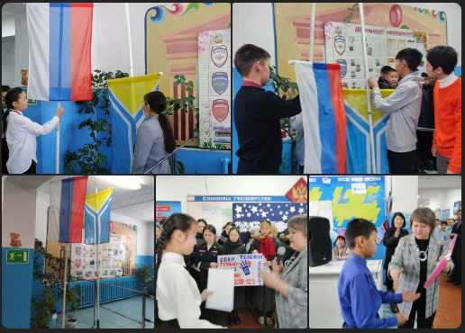 16.01.23 г. Еженедельная линейка в МБОУ СОШ 2 г.Турана началась с церемонии поднятия флагов РФ и РТ и исполнения государственного гимна РФ и РТ.