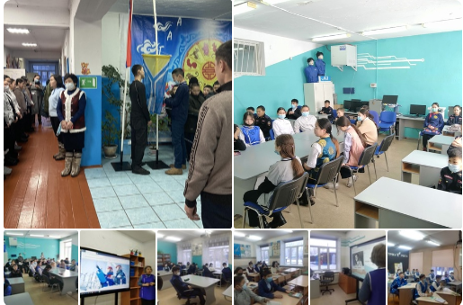 13.02. Прошла очередная линейка, поднятие флага и исполнение гимнов РФ, РТ. Право поднять флаг предоставлен победителю и призёру соревнований по национальной борьбе «Хуреш», в честь празднования праздника «Шагаа-2023» Допуй-оол Этигел и Ооржак Нодуп.