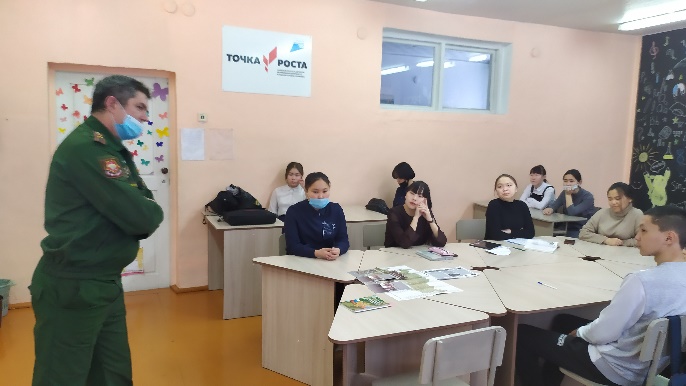 Проведена разъяснительная работа о порядке поступления в учебные заведения министерства обороны Российской Федерации, о социальных гарантиях военнослужащих. Среди детей были распространены буклеты с информацией об образовательных организациях министерства обороны РФ.